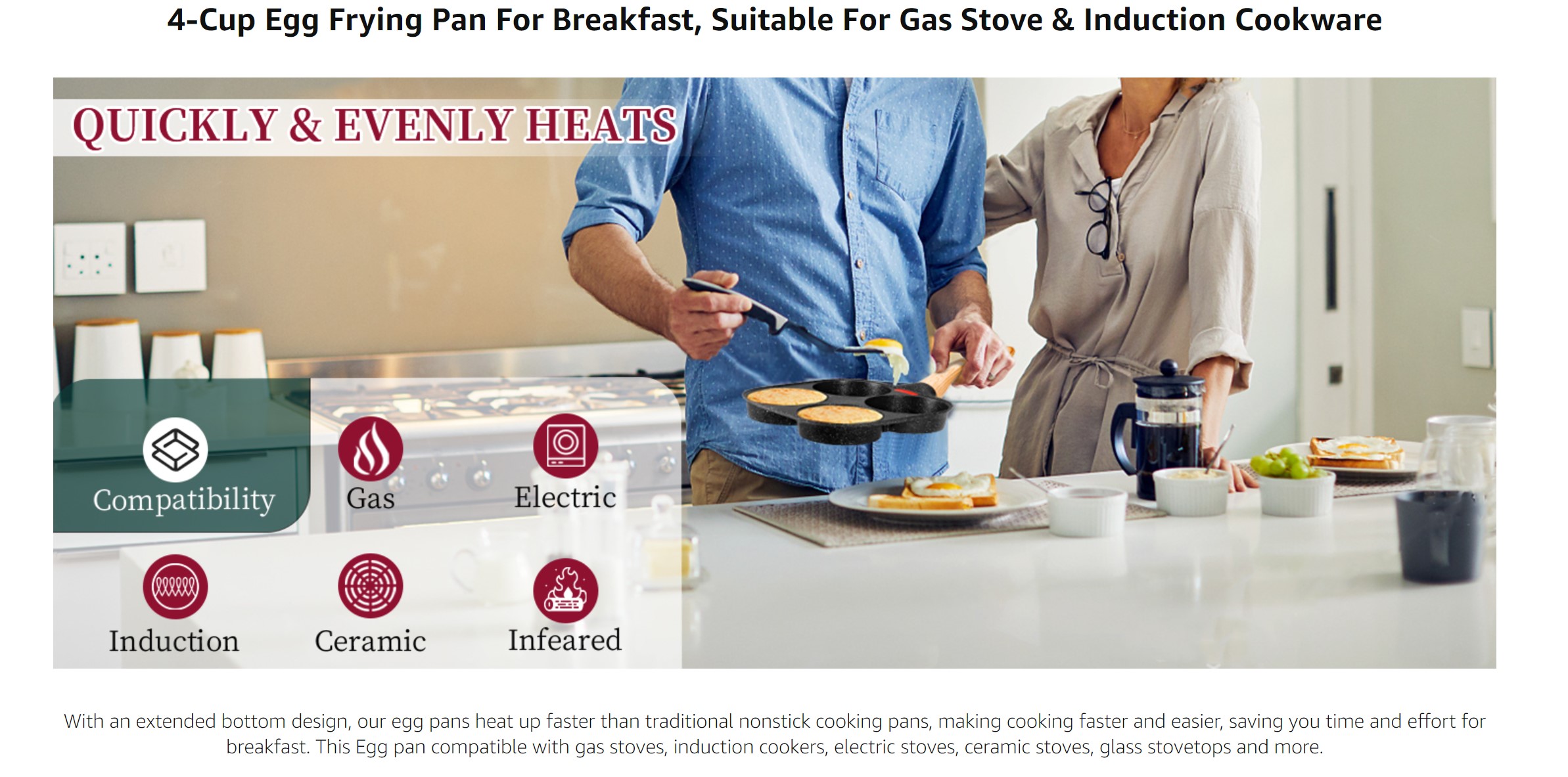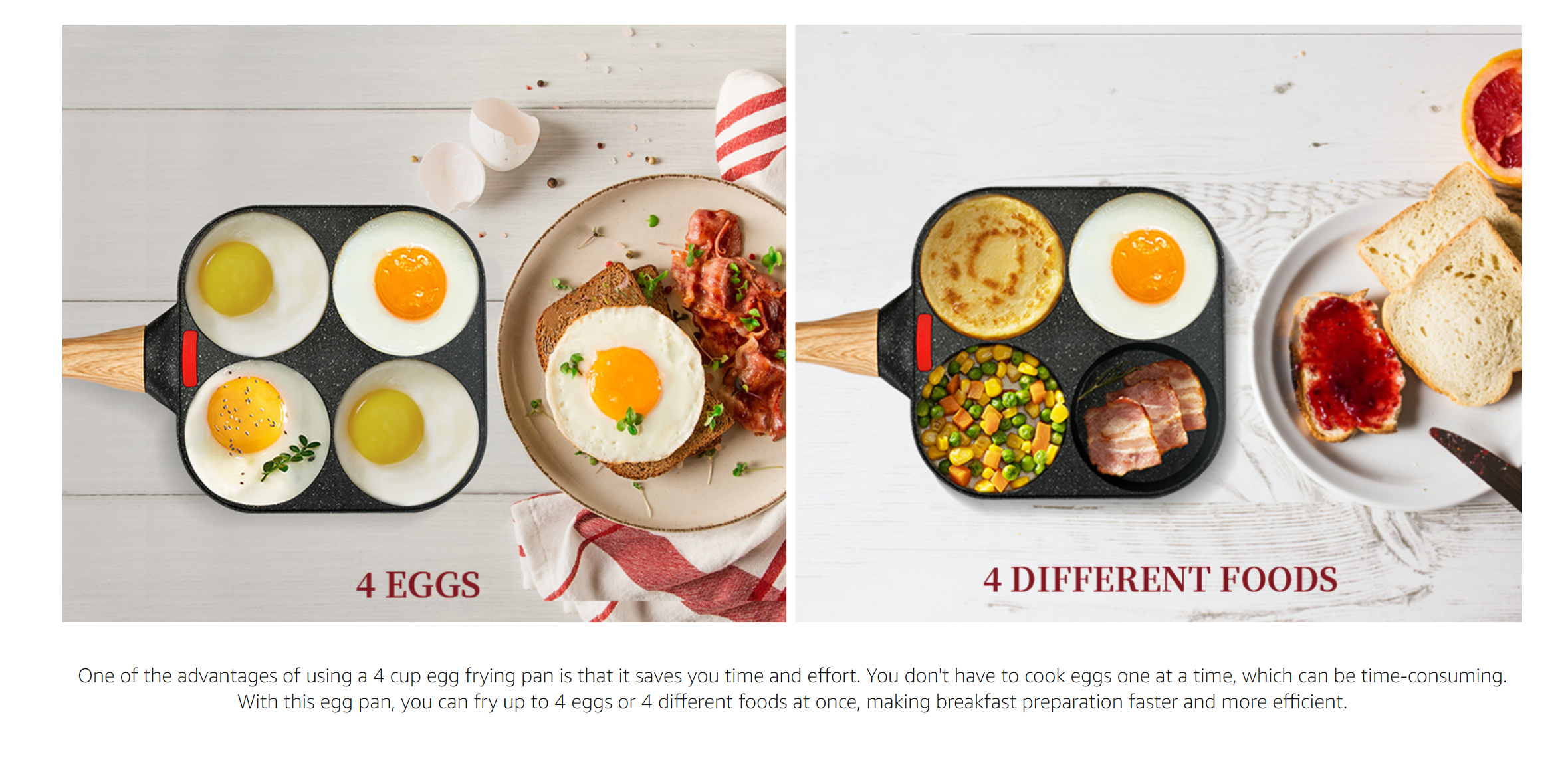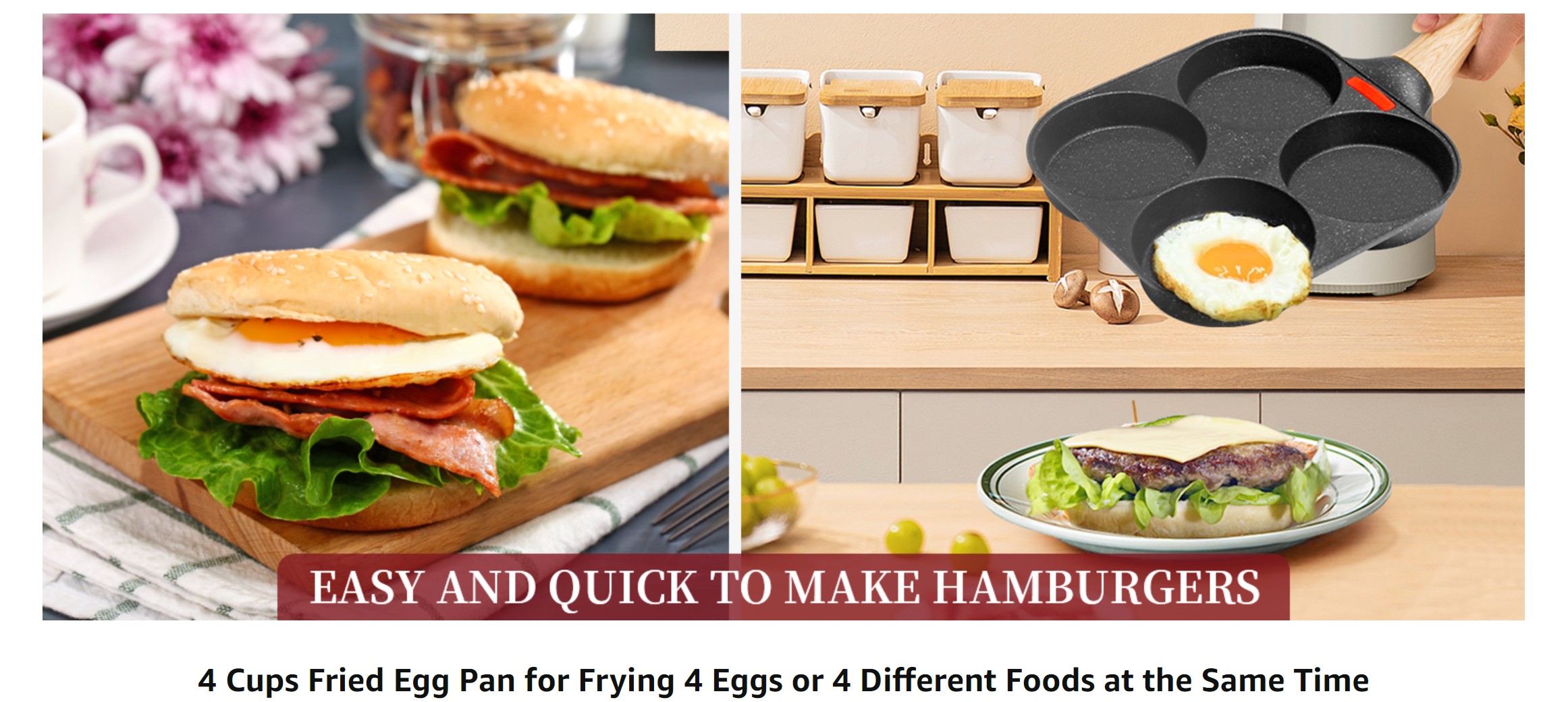 • 4-Cup Egg Frying Pan: The ultimate time-saver for your breakfast routine! Designed with four convenient holes, it’s perfect for making omelets, bacon, burgers, pancakes, and more, all at once. Cook your favorite meals faster and easier, saving time and energy in the kitchen.